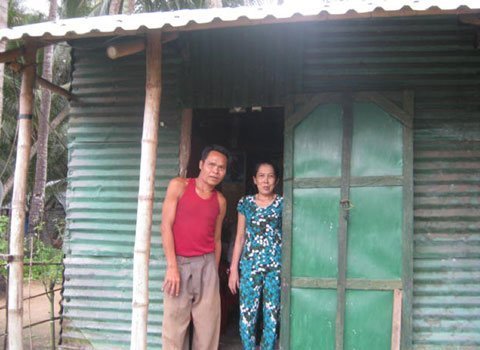 Hai vợ chồng về sống trong căn nhà tranh, nhưng sau thời gian mưa nắng mái tranh có chỗ thấm dột thì lận vào đó lỗ chỗ tấm rạ hoặc mo dừa. Từ bao năm qua ngôi nhà ấy cũng chỉ rộng vẻn vẹn 20m2 , có điều hiện tại ngôi nhà đã được lợp tôn.