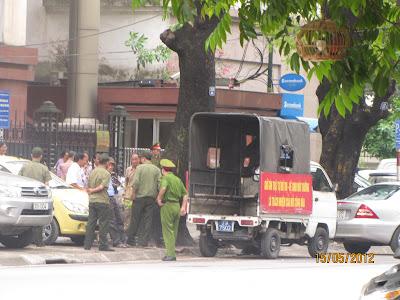 - 11.30 bà con Dương nội cho biết : công an đưa bà con bị bắt lên xe thùng về số 1 Ngô Thì Nhậm, tuy nhiên bà con không đồng ý xuống xe, yêu cầu công an Hà đông phải lập biên bản về việc bắt người đi bộ trên phố. Bà con cương quyết sẽ sinh hoạt trên xe thùng của công an.