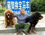 Hai chú chó, một lông vàng và một lông đen, nặng lần lượt 80kg và 92kg, là giống chó xuất xứ từ Tây Tạng, có đặc điểm là cực kỳ to lớn.