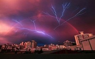 Sự hiện diện đồng thời của cầu vồng và sét tạo nên một cảnh tượng kỳ thú tại Trung Quốc. Cảnh tượng trong bức ảnh trên xảy ra dưới bầu trời thành phố Hải Khẩu, đảo Hải Nam, Trung Quốc.