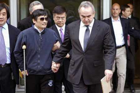 Ngoại trưởng Hillary Clinton ra thông cáo: “Tôi rất hài lòng là chúng tôi đã dàn xếp cho ông Trần được tạm trú trong sứ quán, và sau đó, rời khỏi sứ quán theo đúng cách thức phù hợp “với sự lựa chọn của ông”, cũng như những tiêu chí của chúng tôi. Ông Trần được chính phủ TQ thông cảm về tương lai của ông, trong đó, có việc tiếp tục con đường học vấn ở một môi trường an toàn”.