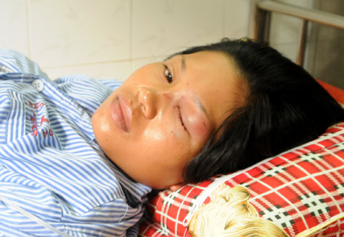 Chị Thủy với một bên mắt bị sưng húp.