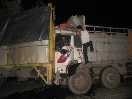 Tai nạn liên hoàn, tài xế mắc kẹt trong cabin