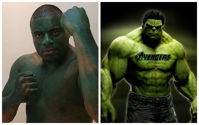 Anh Enrique Dos Santos, 35 tuổi, một vận động viên bơi lội người Brazil đã tự sơn lên mình màu xanh lá cây để cosplay thành nhân vật Người khổng lồ xanh (Incredible Hulk) trong một cuộc thi chạy tổ chức tại địa phương.