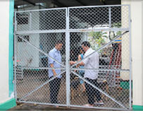 Gia trang luôn có 4 vệ sĩ và 6 con chó bécgiê canh chừng.