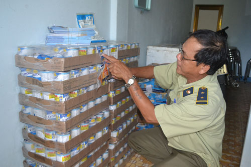 Theo đó, số hàng bị phát hiện gồm 303 lon sữa loại 237 ml không nhãn mác, 43 kg nhãn tròn (nhãn phụ), 1.600 nhãn dài (nhãn chính) màu xanh có chữ Ensure, 1 kg keo dán và 105 chai sữa Ensure nhập khẩu nhưng không có nhãn phụ hàng hóa.