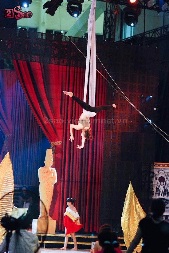 Trong buổi tập cho đêm chung kết tối nay (17/06) tại sân vận động Quần Ngựa, người xem có một phen đứng tim khi chứng kiến Minh Hằng treo người lên tít trần nhà và tiếp đất trong tư thế thẳng đứng, đầu chúc xuống đất...