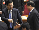 Ông Bạc Hy Lai (phải) bắt tay với ông Trương Đức Giang trong kỳ họp quốc hội hồi đầu năm ở Bắc Kinh. Ảnh: AFP