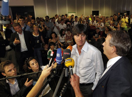 ..tuyển Đức đã tổ chức một cuộc họp báo nhanh khi đội bóng này trở về ngay tại sân bay