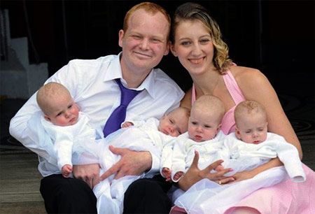 Ca sinh của Charlene Medlicott nằm trong số những trường hợp vô cùng hiếm gặp, cứ 25 triệu mới có một, khi cô sinh 4 là hai cặp sinh đôi hoàn toàn khỏe mạnh. Evelynn, Gracie-Lou, Rosaline và Amalia-Rose Connaughton đã chiến thắng số phận để tồn tại, mặc dù các bác sĩ từng tư vấn cho người mẹ nên phá hai trong số 4 thai.