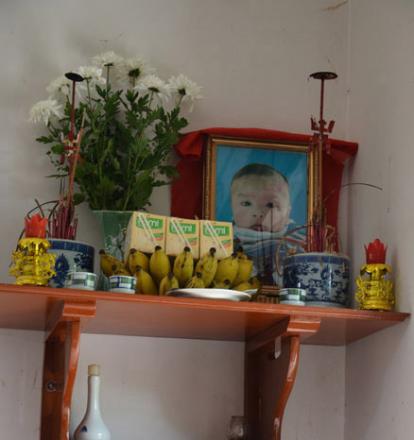 Bố của anh Hiền, năm nay đă 73 tuổi, đi c̣n không vững do chứng bệnh viêm khớp đau đớn kể với tôi: “Khó khăn lắm mới có được đứa cháu, thế mà nó nỡ ḷng nào… Đến hôm 100 ngày, cháu nó mới có cái ảnh thờ. Chứ những ngày đầu, chúng tôi c̣n phải che bàn thờ đi, v́ cứ nh́n thấy là bố nó, bà nó khóc ngất. Cả nhà tôi lo bố nó cũng đến phát điên như con mẹ nó mà thôi”.