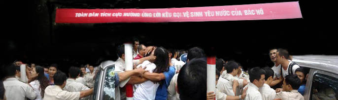 Chỉ tiếc rằng khi người dân Hà Nội đội mưa gào thét xác nhận “Hòang Sa-Trường Sa là của Việt Nam”, và những Thanh niên, Thiếu nữ là rường cột tương lai của đất nước xuống đường biểu tình quyết chống quân xâm lược ở Sài Gòn lại bị ngăn cản, bị đánh và bị bắt thì Trương Tấn Sang lại rỗi công đi phát động “Phong trào vệ sinh yêu nước” thì có chuyện nào vô duyên,lãng nhách và phản cách mạng hơn không ? -/-