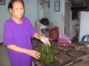 Trong ngôi nhà của vợ chồng bà (272 Bàu Cát, phường 11, quận Tân Bình - TPHCM), chất đầy những xấp lá chuối còn xanh tươi. Lẫn trong mùi lá là mùi nếp mới, mùi đậu xanh vừa nấu chín thơm lừng. “Công việc làm bánh tuy không cực nhưng cứ loay hoay hết chần lá đến gút nếp, nấu nhân. Cả ngày không rảnh tay” - bà cười nói.