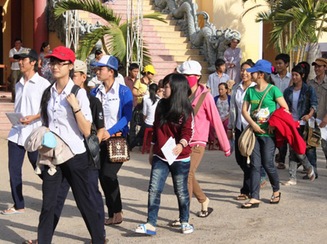 Thí sinh cụm thi Quy Nhơn đến trường làm thủ tục dự thi đợt 2 sáng 8/7. (Ảnh: Doăn Công)