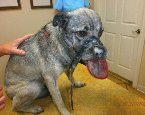 Một chú chó bị bỏ rơi trong tình trạng vô cùng đáng thương đã được tìm thấy tại Weatherford, bang Texas, Mỹ. Chú chó này được phát hiện khi mõm đang bị băng keo điện quấn quanh còn chiếc lưỡi thì sưng to khủng khiếp.