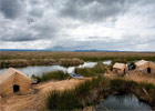 Những ngôi nhà lau sậy trên hồ Titicaca.