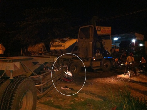 Khi đến trước bãi xe Công ty TNHH Nguyễn Hoàng (địa chỉ số 348, phường Phước Long A, quận 9) bất ngờ xe đầu kéo container BKS 51C-152.95 (chưa rõ tài xế) ôm cua rẽ vào bãi nhưng tài xế không quan sát cuốn cả 2 người vào gầm, xe máy bị kéo đi hàng chục mét.