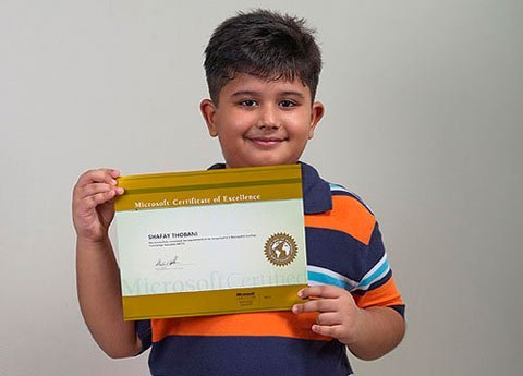 Cậu bé Shafay Thobani đă làm quen với chiếc máy tính từ năm lên 4 và hoàn thành một cách xuất sắc các bài kiểm tra để nhận bằng chuyên gia do Microsoft cấp.
