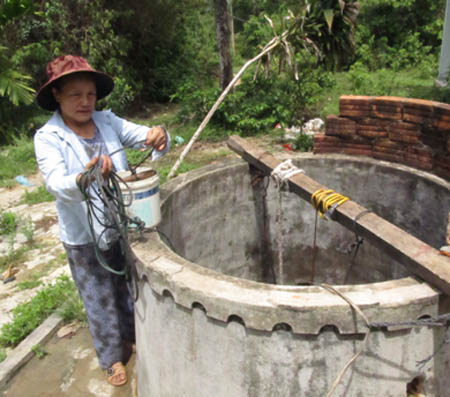 Nguồn nước giếng của gia đình bà Thái Thị Quá bị ô nhiễm nặng.