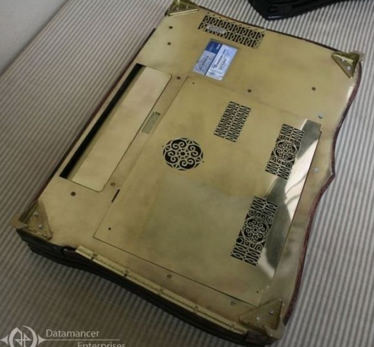 Dành cho những người đam mê phong cách Steampunk cổ điển, chiếc laptop “độ” mang tên Datamancer Victorian được nghệ nhân Richard R.Nagy thực hiện thủ công. Sản phẩm mặc thêm "bộ cánh" bằng gỗ trông rất hầm hố, đường nét chế tác mềm mại và phần bản đồ thế giới ấn tượng trên vỏ máy.