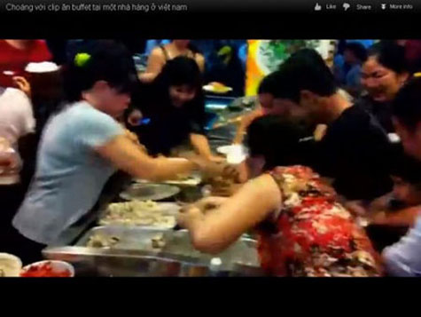 Là một thực khách Hà Nội đã đi ăn ở nhiều nơi nhưng thực sự khi được xem xong những hình ảnh xâu xé thức ăn của các thực khách với kiểu ăn buffer trong đoạn clip mới đây tại một nhà hàng ở Sài Gòn tôi thực sự rất "sốc" và chỉ còn biết nói hai từ "chào thua"...