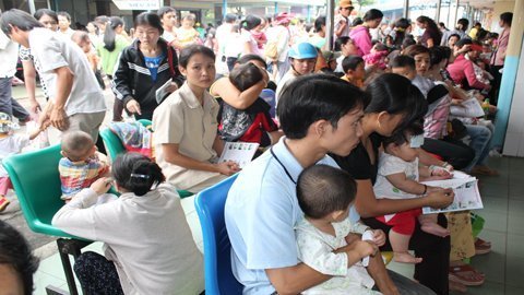 Vợ anh theo chỉ dẫn của bà con, đem cháu bé tới trạm y tế của xã khám.