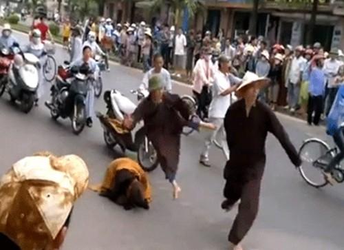 Trong một lần khác tại Thanh Hóa, khi đoàn “nhất bộ nhất bái” của đại đức Thích Tâm Mẫn bắt đầu cuộc hành lễ vào lúc rạng sáng, những người đi đường hiếu kỳ đứng lại xem cũng gặp phải những lời lẽ thô tục ngang nhiên cấm người và phương tiện qua lại phía trước đoàn của một số người trong trang phục tu hành.