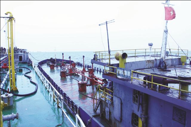 Tàu Giang Châu 1 bị bắt quả tang đang bơm xăng trái phép sang tàu Hoàng Sơn 09 (ngày 28.7.2012). Ảnh: Báo Hải Quan