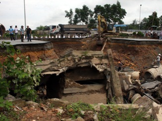 Nhiệm vụ của Công ty CP Sông Đà Thăng Long là gia cố toàn bộ hố móng công trình để không xảy ra các hiện tượng sạt lở tiếp theo; đóng ngay toàn bộ cọc cừ và các biện pháp khác như rọ đá, vải địa kỹ thuật… để ổn định lại khu vực hố sụt lở; khôi phục hệ thống đường ống cấp nước truyền dẫn D400 để phục vụ cung cấp nước sạch cho khu vực; đắp cát đầm chặt hố sụt giữ nền ổn định để thông xe phần đường còn lại trước ngày 25.8. Sau khi có thiết kế phương án khắc phục cụ thể sẽ thi công để hoàn trả nguyên công trình.