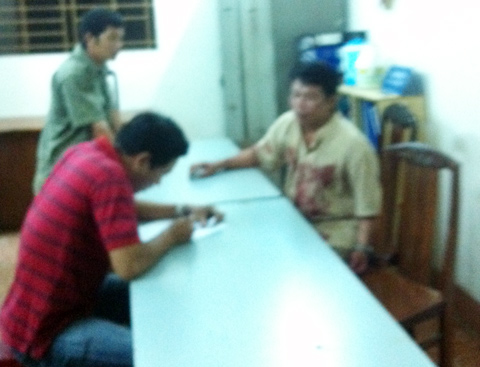 Lâm người đầy máu đến tự thú. Ảnh: M.P