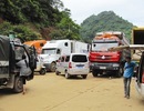 Phía sâu nội địa, cách 300 mét, một đoàn xe, chủ yếu là loại container nằm chờ đã hơn một ngày.
