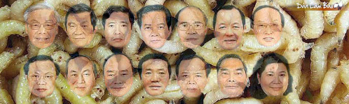 Một "con sâu" khác: Trưởng ban chỉ đạo phòng chống tham nhũng. Đã mấy mùa lá rụng rồi mà ông cứ lay hoay xoay xở: quyết liệt; quyết tâm; triệt để; làm rõ; công khai; minh bạch; công bằng; dân chủ; văn minh; xử đúng người, đúng tội... cuối cùng thì tham nhũng trầm trọng thêm. Thấy không ổn, ông trưởng ban lúng túng, định bán cái về trung ương cho tập thể đảng chỉ đạo, chỉnh đốn, kiểm điểm thì lại càng thêm... trật đường rầy. Bởi lẽ, tham nhũng thì từ các bộ, ban ngành; nó thuộc về kinh tế, mà ông thủ phải chịu nhiệm thì bây giờ ông lại đi bán cái cho ai!