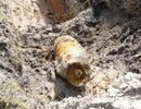 Ông Thùy phát hiện quả bom lúc 16 giờ ngày 28/8. Quả bom có chiều dài hơn 1,5m, nặng khoảng 300kg và có đường kính hơn 40cm.