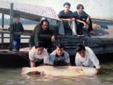 Hôm đó, ông và người con trai ra sông Lam giăng lưới. Được một lúc, ông thấy thuyền chao đảo. Khi kiểm tra th́ thấy một con cá "khổng lồ" đă bị mắc lưới và hai cha con ngỡ ngàng v́ chuyến đi này ḿnh trúng “vàng”.