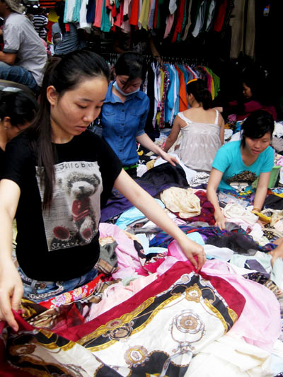 Anh Tiến Dũng, người đặt hàng tại xưởng may Khang Việt (đường Nguyễn Duy Cung, quận G̣ Vấp) để bán ở vỉa hè, cho biết: Quần áo của các cơ sở may nhỏ lẻ tốt hơn hàng nhập khẩu từ Trung Quốc theo đường tiểu ngạch, giá cũng rẻ hơn nên dễ bán. Mỗi ngày, anh bán được khoảng 20-30 cái, kiếm được 200.000-300.000 đồng.