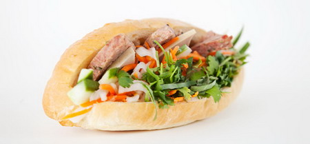 Bánh mì là một món ăn đường phố rất sáng tạo của người Việt Nam. Về cơ bản đó là một chiếc bánh dài làm bằng bột mỳ, bên trong nhồi các loại thịt khác nhau như thịt lợn, thịt gà, pa tê gan, xúc xích… cùng nhiều loại rau sống, củ cải, cà rốt, dưa chuột… và các loại gia vị khác nhau. Món ăn này là một sự pha trộn hài hòa của nhiều hương vị hấp dẫn.