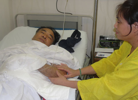Trung tá Thanh khi điều trị tại Bệnh viện Việt Đức. Ảnh: D.H.