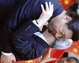 Chỉ cần nhìn hai bức ảnh trên : ông Tổng bí thư Nguyễn Phú Trọng ôm hôn ông Tập Cận Bình sắp làm hoàng đế nước Trung Hoa đỏ (nép vào, ẩn vào khuất cả mặt) trong một rừng cờ Trung Cộng do bộ ngoại giao Việt Nam may còn mới tinh trong lễ đón tiếp ông này tại Hà Nội: một sao to: HÁN cộng thêm bốn sao nhỏ cũ : TẠNG-HỒI-MÔNG-MÃN thêm sao nhỏ mới là sao VIỆT NAM (theo thỏa thuận Thành Đô 1990?) là lá cờ năm sao. Ngay cả cờ Trung Cộng trên đài truyền hình Việt Nam cũng là lá cờ đã sát nhập Việt Nam vào lãnh thổ Trung Hoa , cờ một sao HÁN to cộng với bốn sao nhỏ cũ (TẠNG HỒI MÔNG MÃN) và một sao nhỏ mới tinh (VIỆT NAM) do nhà cầm quyền Việt Nam (Đảng Cộng sản Việt Nam) tự nguyện thêm vào một sao nhỏ mới trên lá cờ NƯỚC LẠ, đặng xóa biên giới Việt Trung trước khi chủ nghĩa xã hội thành công (tỉ năm nữa mới…có thể… thành công ?) …