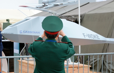 Một thành viên phái đoàn quân sự Việt Nam chụp h́nh chiếc máy bay do thám không người lái kiểu Cassidian do EADS chế tạo, tại cuộc triển lăm ở Villepinte gần Paris hồi Tháng Sáu, 2012. (H́nh: Eric Piermont/AFP/Getty Images)
