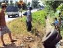 Cặp bánh xe sau khi đập vào chị Lài còn tiếp tục lăn thêm gần 10m nữa mới mắc kẹt tại mương nước bên đường.