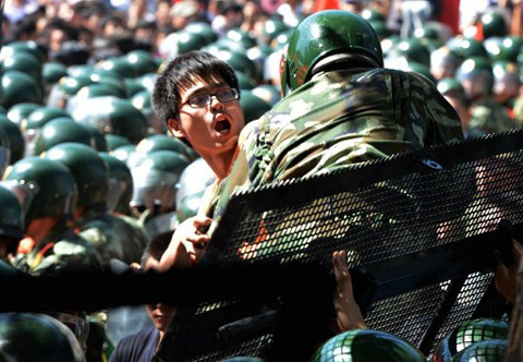 Cảnh sát Trung Quốc chặn một người biểu t́nh muốn xông vào đại sứ quán Nhật tại Bắc Kinh. Ảnh: AFP |