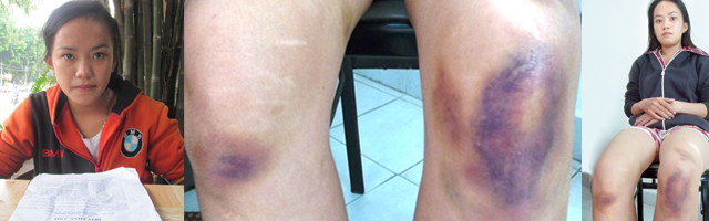 PN - Sau hơn một tháng tố cáo Công an (CA) P.Tân Phong, Q.7, TP.HCM đánh đập đến bầm tím hai đầu gối, ngày 12/9, chị Đinh Thị Thu Diễm (SN 1992, ngụ P.Bình Trưng Tây, Q.2, TP.HCM) đã được CA Q.7 trả lời. Theo đó, thương tích trên người chị là do… tự té.
