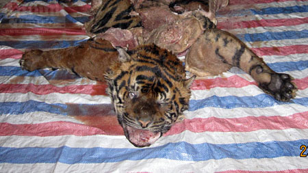 Cận cảnh vụ xẻ thịt hổ dã man trong bóng tối