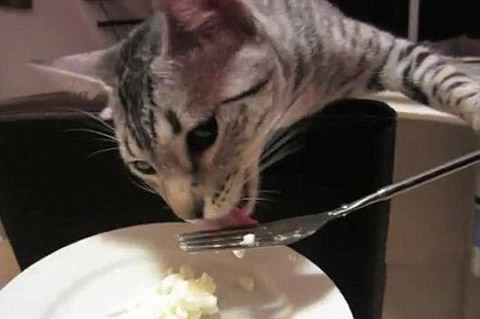 Video clip ghi lại cảnh một chú mèo cầm dĩa xúc khoai tây nghiền ăn ngon lành đã thu hút hàng trăm nghìn lượt xem.