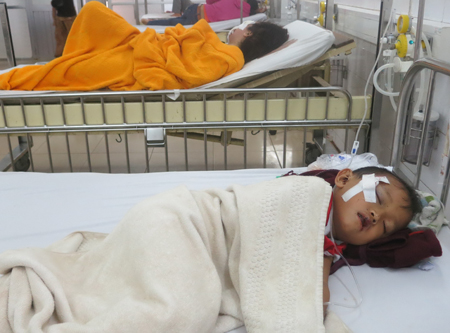 Lúc nhập viện, cháu Đại trong tình trạng gần như hôn mê do mất nhiều máu. Chị Phi bị 2 vết thương ở đỉnh đầu, 1 vết ở trán và 2 vết trên 2 đuôi mày. Riêng cháu Cường được xác định đã tử vong.