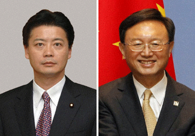 Ngoại trưởng Nhật Bản Gemba và người đồng cấp Trung Quốc Dương Khiết Tŕ. Ảnh: Kyodo |