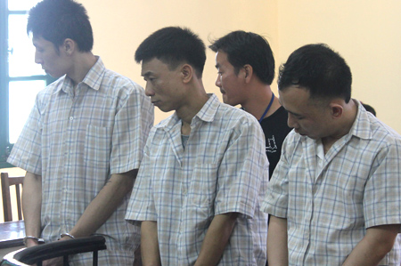 Nhóm bị cáo cưỡng đoạt tài sản nghe tòa tuyên án, Tưởng áo đen (phía sau). Ảnh: Việt Dũng.