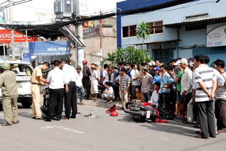 Vào thời điểm trên chị Ngô Thị Mỹ Duyên (19 tuổi, ngụ Tân Phú) điều khiển xe tay ga mang BKS: 54U5 – 4958 luu thông trên đường Thoại Ngọc Hầu theo hướng ra đường Lũy Bán Bích. Khi đến trước nhà số 175 Thoại Ngọc Hầu, bất ngờ xuất hiện hai thanh niên đi chung xe Exciter màu đỏ BS: 59P – 154.38 áp sát từ phía sau.