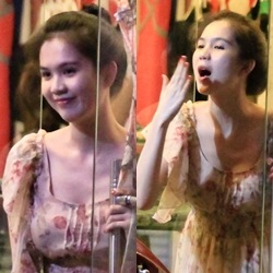 Cuối tuần qua, vô t́nh bắt gặp Ngọc Trinh tại một cửa hàng thời trang trên đường Nguyễn Văn Cừ, chúng tôi dự định sẽ "bám đuôi" người đẹp đi mua sắm. Nhưng điều bất ngờ là "Nữ hoàng nội y" không phải đến mua hàng, mà là... phụ bán hàng cho người chị là chủ shop. Ngọc Trinh bán hàng rất chuyên nghiệp, chu đáo với khách. Thậm chí, cô c̣n ra mở cửa chào khi khách ra về và "hôn gió" khách hàng thân thiết của shop chị ḿnh.