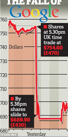 Đây được coi là sự sụt giảm lớn nhất trong lịch sử chứng khoán đối với cổ phiếu của Google với mức sụt giảm 9% (68,19 USD), từ 754,6 USD còn 689,9 USD chỉ trong 8 phút và tổng thiệt hại của Google lên tới 24 tỉ USD.